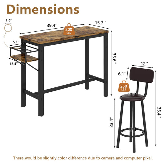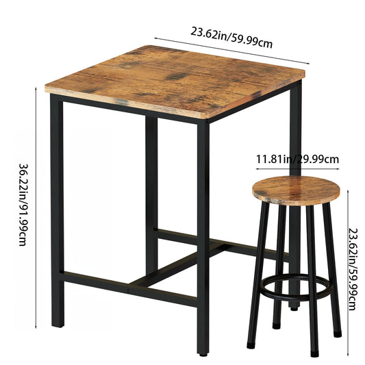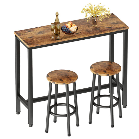 DKLGG Bar Dining Table Set - Rustic Brown Rectangular Kitchen Table Set of 3 for Stylish Dining