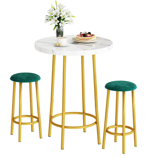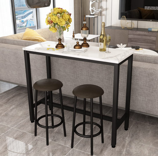 DKLGG Versatile 3-Piece Kitchen Table Set - White Faux Marble Top and Matching Stools for Modern Spaces