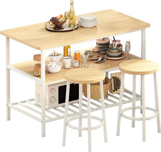 DKLGG Functional 3-Piece Kitchen Island Table Set - Gray Design with Seating and Storage