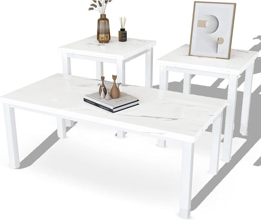 DKLGG Modern Artificial Marble Coffee Table Set - 3-Piece Living Room Table Set for Chic Decor