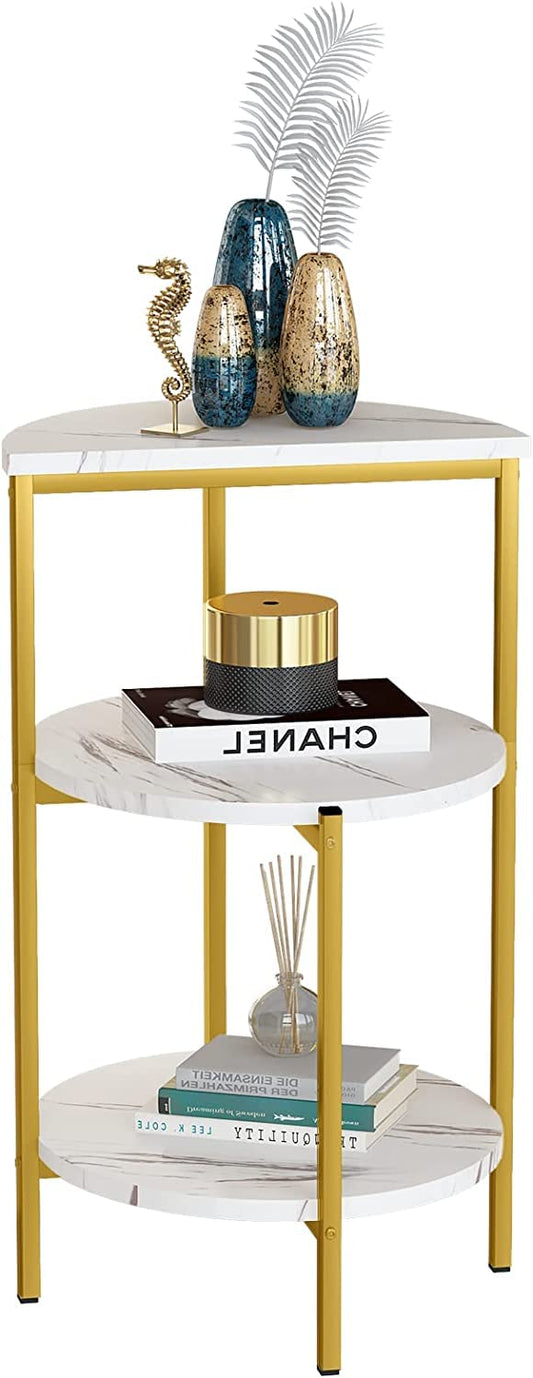 DKLGG Gold + White Marble Coffee Table Set - 3-Tier Design for a Sophisticated Living Room Look