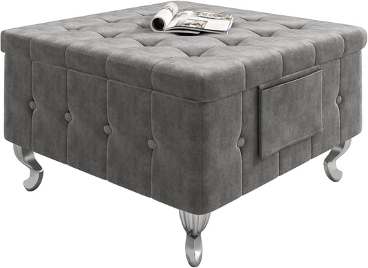 DKLGG Large Square Ottoman with Storage - Oversized Tufted Coffee Table for Stylish Living Rooms