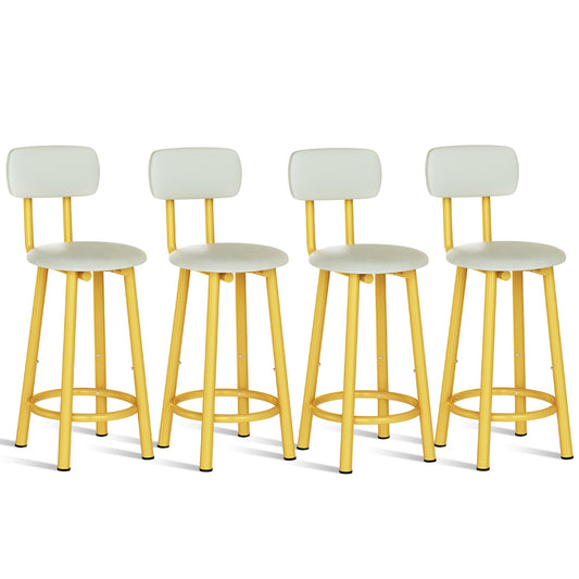 DKLGG Set of 4 PU Leather Bar Stools - High Chairs with Backrest in Elegant Gold Design