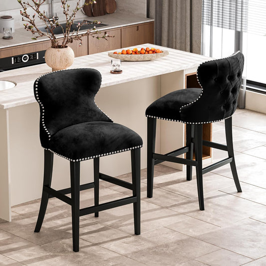 DKLGG 26” High Velvet Barstool Set - 2-Piece with Backrest for Ultimate Comfort