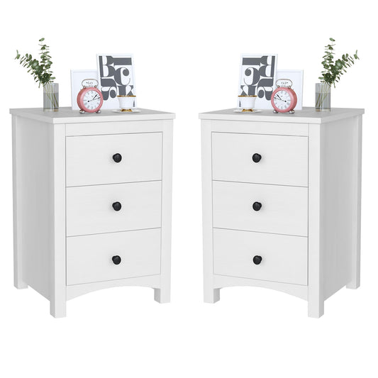 DKLGG White Nightstand Set of 2, Modern Dresser with 3 Drawers, Set of 2