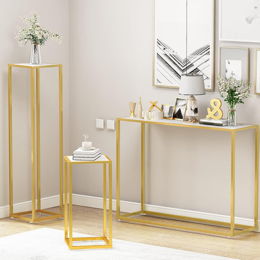 DKLGG 3-Piece Faux Marble Dresser and Coffee Table Set - Elegant White Gold Design