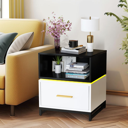DKLGG Elegant Black Nightstand - Functional Bedroom Drawer Dresser for Storage