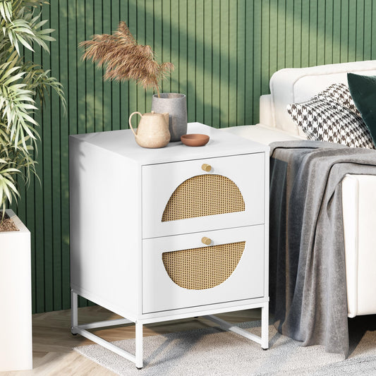 DKLGG Bohemian Nightstand - Stylish White Rattan Bedside Table for Cozy Spaces