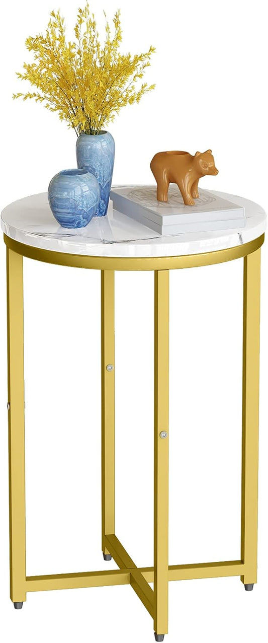 DKLGG 16-Inch Round Faux Marble Table - Multifunctional Accent Table & Nightstand for Chic Spaces
