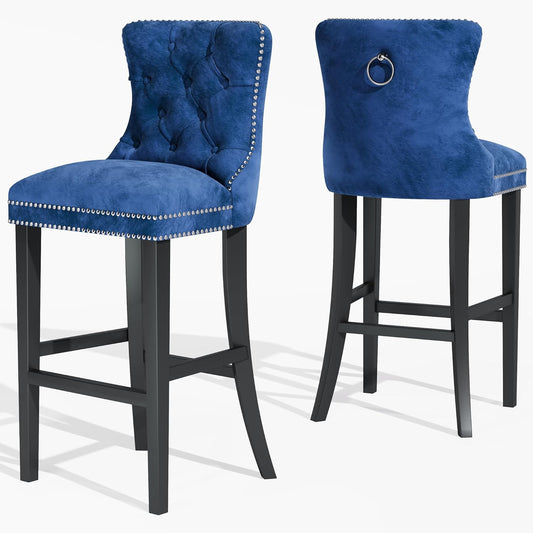 DKLGG Elegant Blue 27-Inch Velvet High Bar Stools Set of 4 – Elevate Your Kitchen Decor