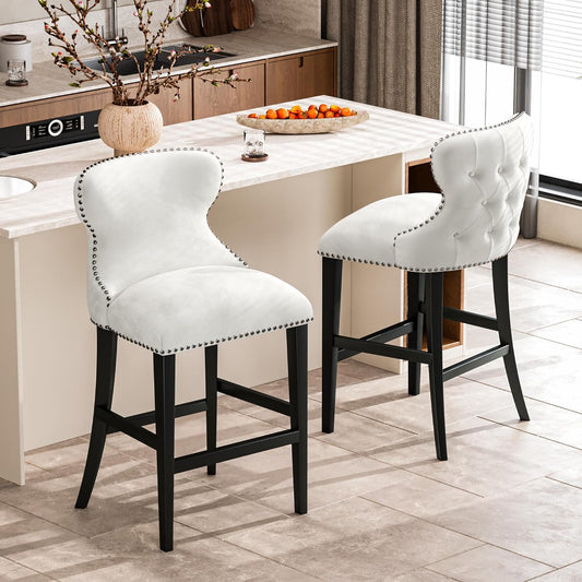 DKLGG Elegant 27” Velvet High Bar Stools - Set of 4 for Kitchen Islands and Bars