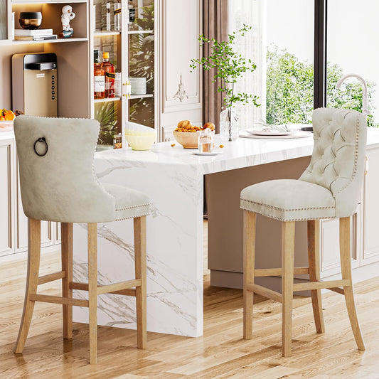 DKLGG Beige Velvet High Bar Stools Set of 4 - 27” Island Kitchen Counter Stools