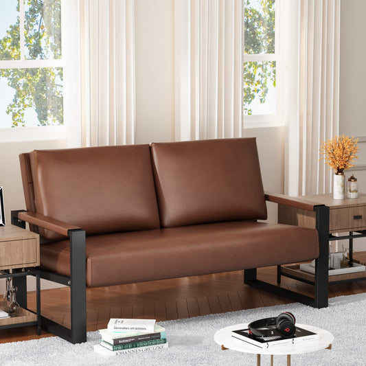 DKLGG Contemporary Two-Seater Sofa - Cozy Yellow Brown Leather for Ultimate Comfort