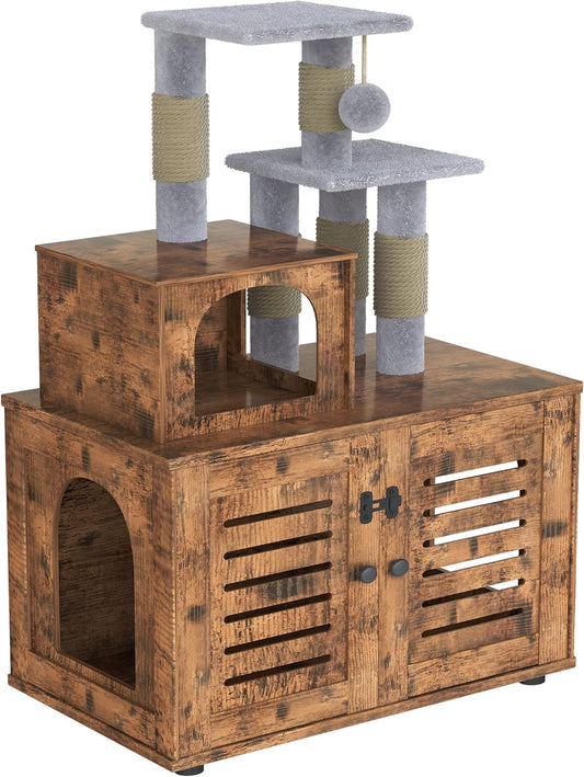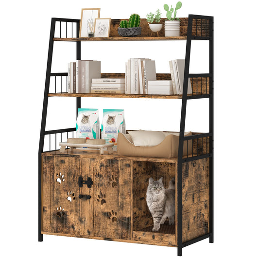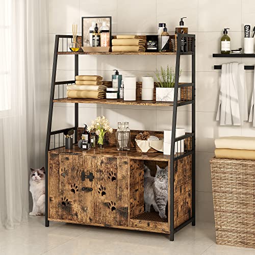 DKLGG Stylish Litter Box Enclosure - Hidden Cat Litter Cabinet in Rustic Brown for a Chic Look