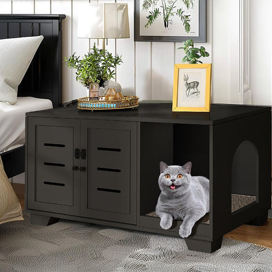 DKLGG Large Cat House with Scratching Board - Sturdy Wooden Indoor Solution for Cat Lovers